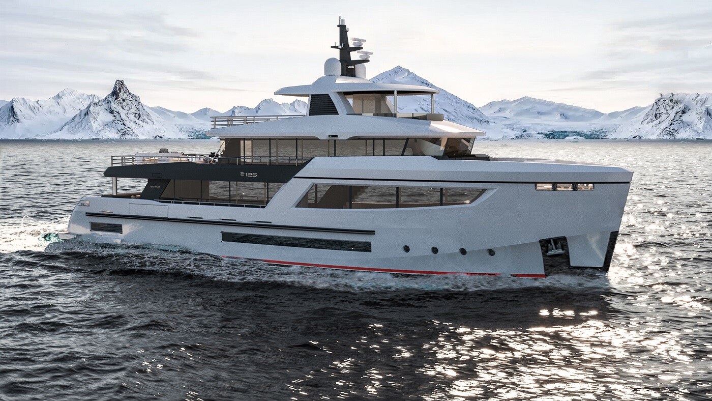 The 38-metre B125 will be one of the biggest and most capable explorer yachts in her class, featuring a massive 9-metre beam and a range of 5,000 nm. Like all Bering models, she is a semi-custom steel and aluminium vessel with superior comfort and safety. With top features including exceptional beach club facilities and large living spaces, the Bering 125 yacht is a yacht designed for endless exploration. 5 guest cabins + 7 crew. She is built to Rina class.