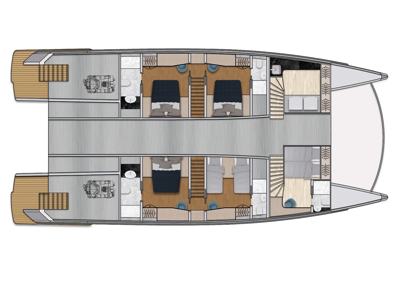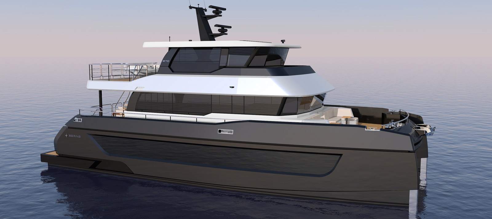 The Bering Catamaran BC70 is an aluminum-hulled explorer designed to conquer any ocean. With a range of over 3,000 nautical miles and a fuel capacity of 16,000 liters, the BC70 is one of the most capable catamarans of its size. Abundant storage, large freezers, and comprehensive waste management and water-making systems make the BC70 perfectly suited for extended, self-sufficient voyages.