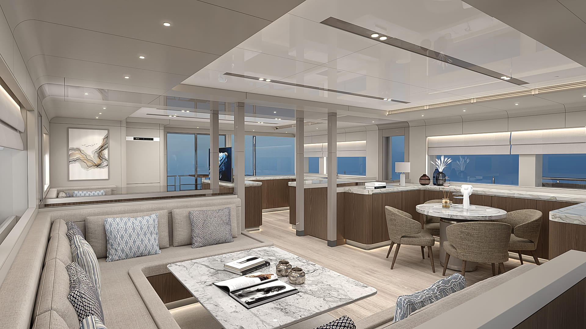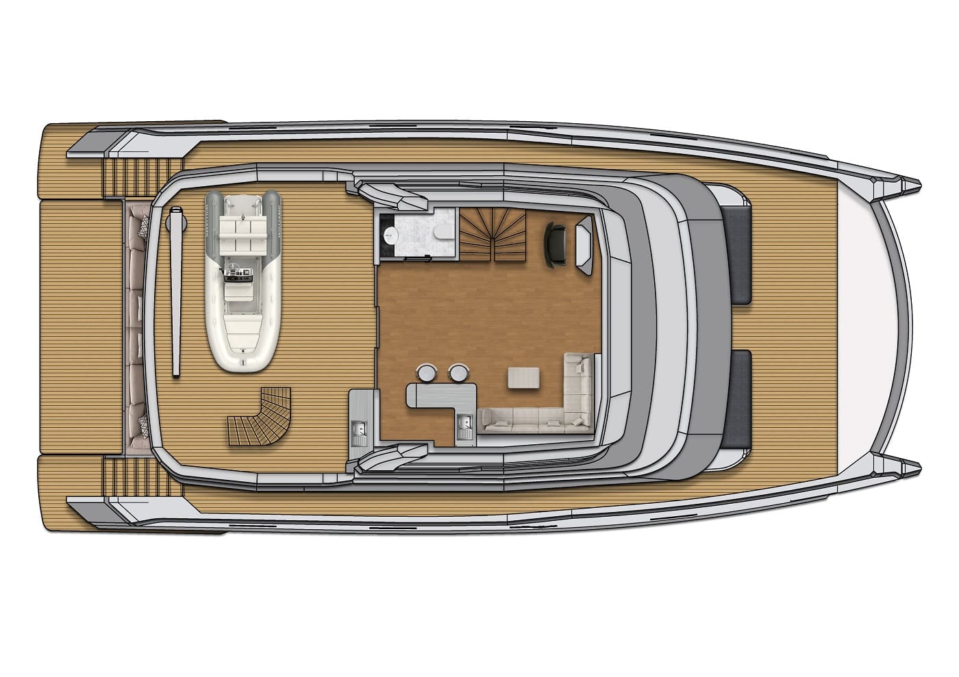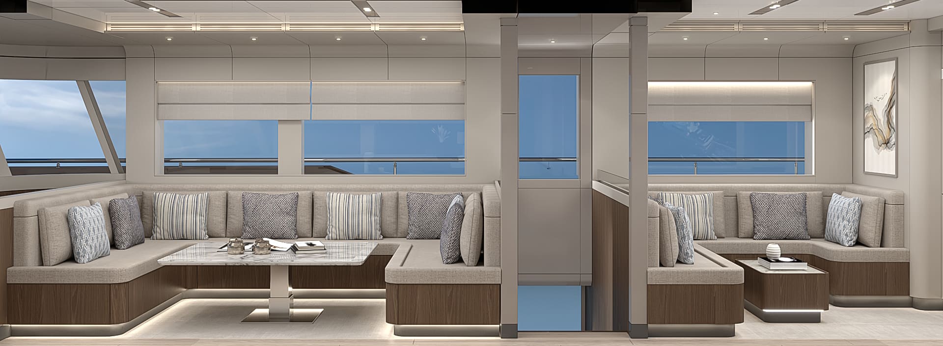 The BC70 offers a spacious and versatile layout, featuring five luxurious cabins that comfortably accommodate guests and crew. The meticulously designed interior prioritizes space and comfort, providing ample areas for relaxation and entertainment. Large panoramic windows bathe the interior in natural light, while premium finishes and meticulous attention to detail create an ambiance of understated elegance.