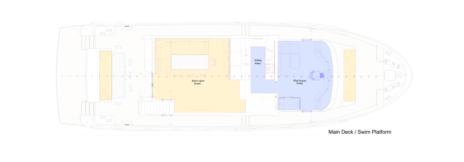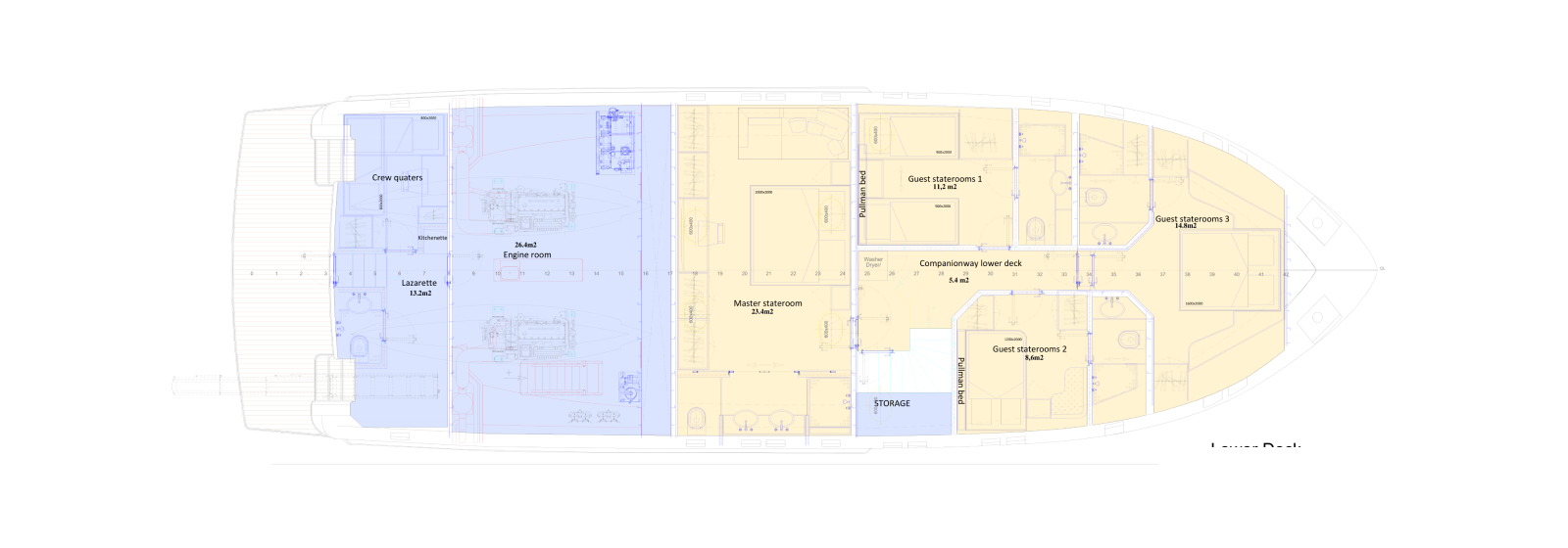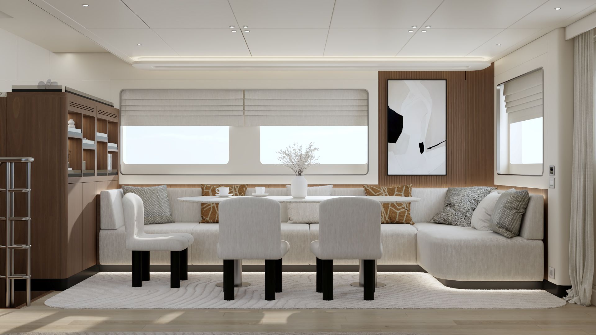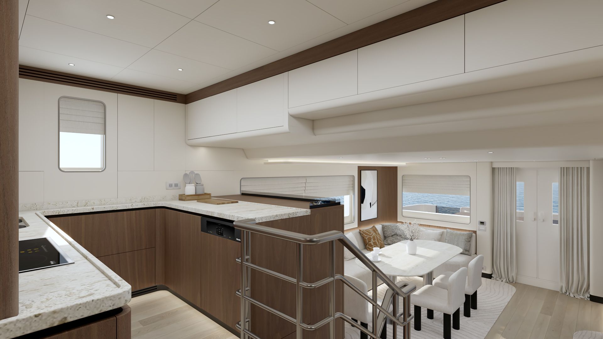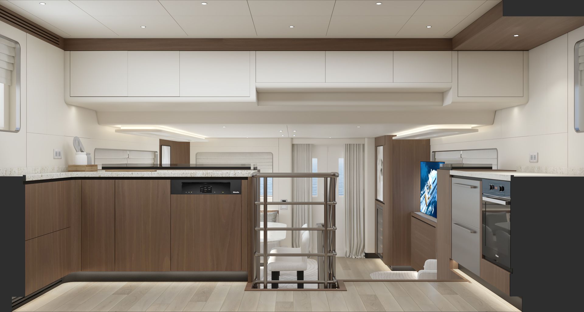 Outdoor spaces have been dramatically expanded: a generous 273 sq ft (25.4 m²) flybridge and an impressive 453 sq ft (42.1 m²) boat deck that can accommodate a large tender, creating exceptional areas for al fresco dining, lounging, and entertaining — rare at this size. Powered for super-long range (4,000+ nm), with approximately 8,162 gallons (30,900 liters) of fuel capacity, the B77 offers outstanding autonomy, extensive storage, a spacious pantry with dedicated refrigerator and freezer space, and full self-sufficiency for extended voyages. Designed for easy owner operation or optional 2-crew configuration, this compact expedition yacht combines commanding explorer presence with superyacht-level spatial intelligence — perfect for those who want serious blue-water capability without excess.