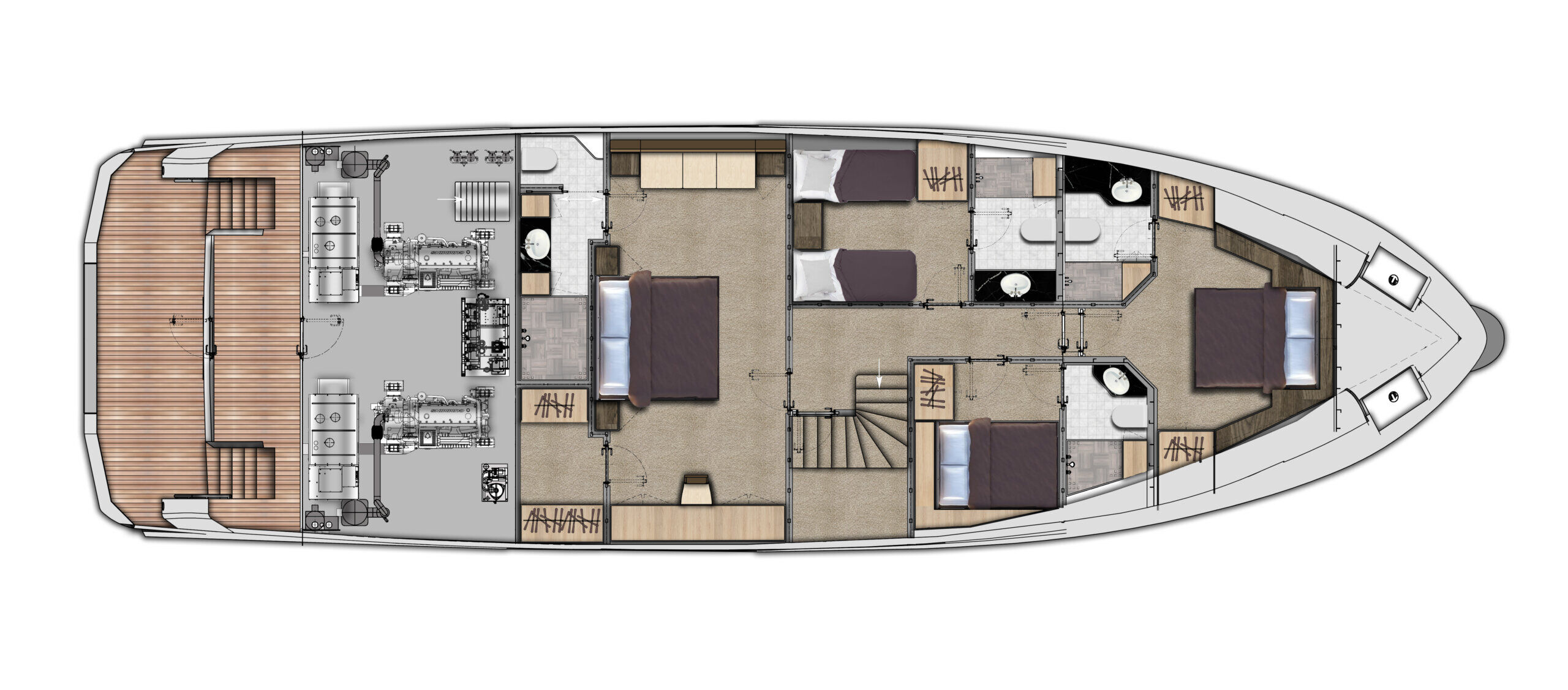 The Bering 82 is a testament to long-range cruising. With an impressive fuel capacity of 22,863 liters and a range exceeding 4,000 nautical miles at cruising speed, this yacht offers unparalleled autonomy. Whether you’re crossing oceans or exploring remote islands, the Bering 82 ensures you can venture far and wide without the need for frequent refueling. Ample storage for provisions and large freezers, combined with advanced water-making and waste management systems, make the Bering 82 the perfect vessel for self-sufficient adventures.
